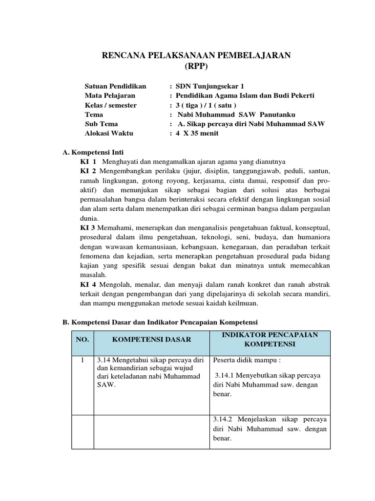 Doc Contoh Rpp Pai Dan Budi Pekerti Sd Yessi Y Academia Edu