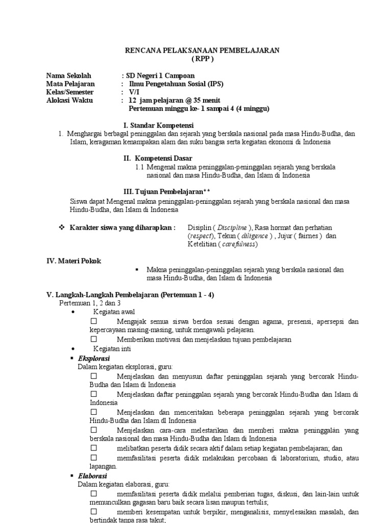 Contoh Rpp Pai Sekolah Dasar Kelas 1 2 3 4 5 Dan 6 Kurikulum 2013