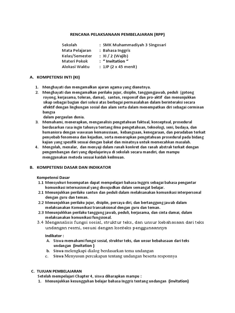 Contoh Rpp Bahasa Inggris Kurikulum 2013 Versi Plpg