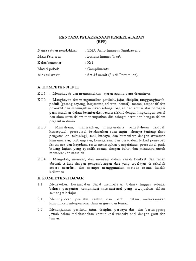 2 Rpp Compliment Kelas X Kurikulum 2013