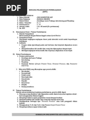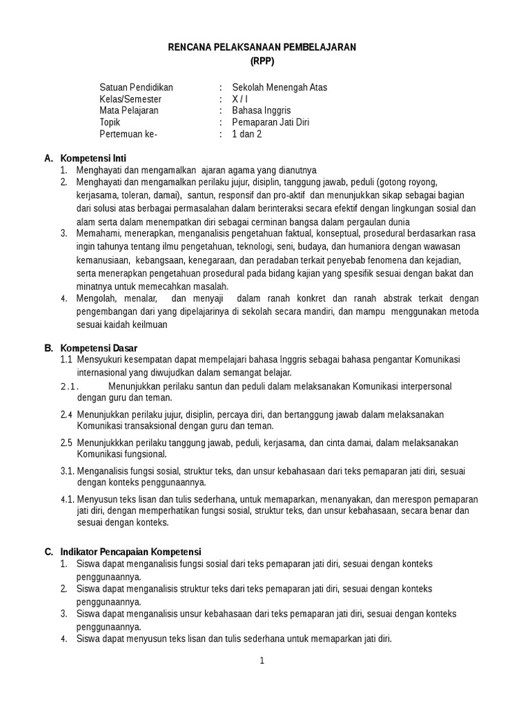 Download Rpp 1 Lembar Bahasa Inggris Sma Smk Revisi 2020 Info