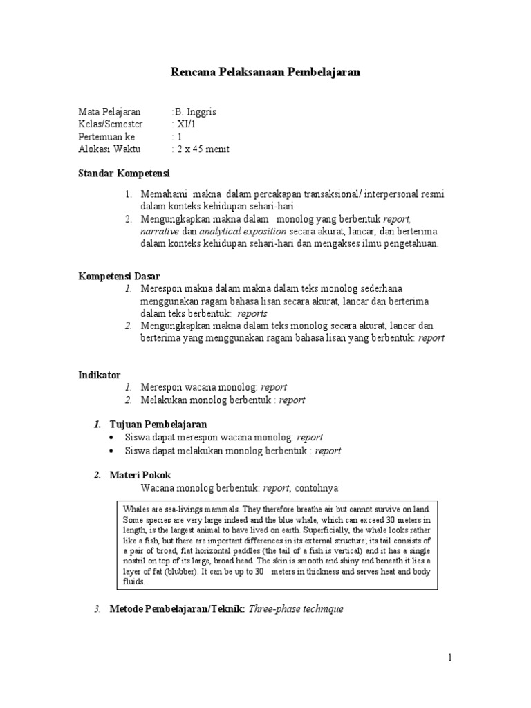 Rpp Kelas 11 Bahasa Inggris 1 Lembar Halaman Tahun 2020 Sma Ma