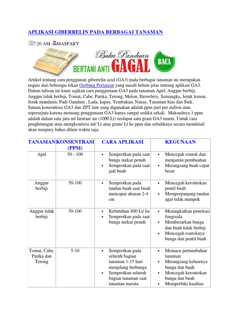 Aplikasi Giberrelin Pada Berbagai Tanaman Gerbang Pertanian